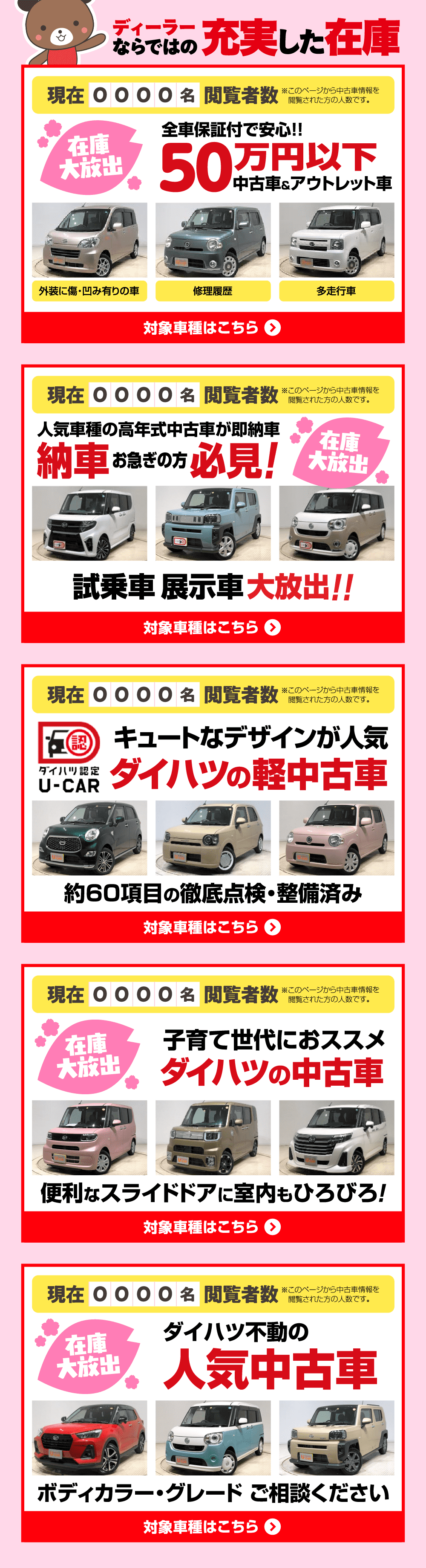 50万円以下の中古車&アウトレット車 大放出即納車! ダイハツ認定中古車 子育て世代におススメ 人気中古車 0 0 0 1 0 0 0 0 0 0 0 0 0 0 0 0 0 0 0 0