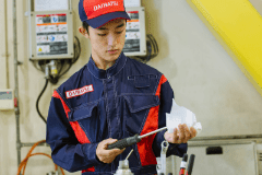入社前は整備士の仕事と言えば、エンジンの積み下ろしなど重作業ばかりなのかなと思っていましたが、今のところ先輩の指導のもと点検・車検を中心に仕事をしています。まだ作業を完全に覚えたわけではなく、ミスを先輩に指摘されることもしばしば。そんな時は、先輩から常々アドバイスされる「作業後に目で見て手で触って確認する」という整備の基本を心がけながら、日々の仕事に取り組んでいます。
