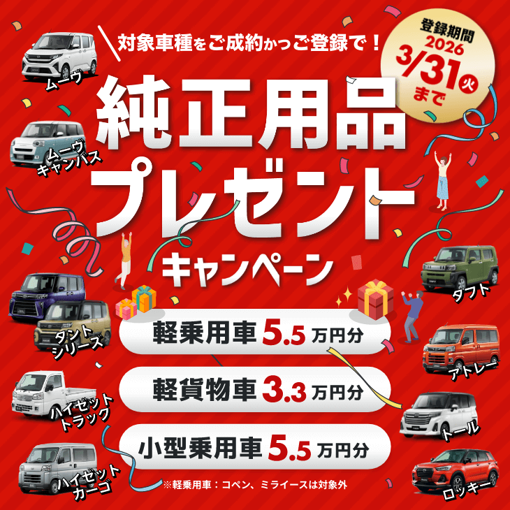 キャンペーン(新車)純正用品プレゼントキャンペーン実施中!