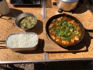 家にあるもをあさり、レトルトの麻婆豆腐を持って行き作ってみました。