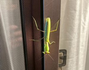 庭の灯りに誘われて、カマキリが一匹、ふらりとやってきました。
