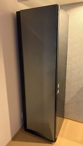 中に衣類をかけておくと、高温のスチームで衣類の消臭やしわ取りができる家電です。