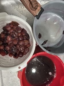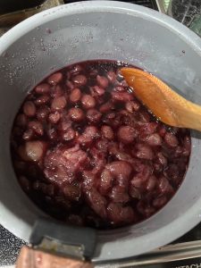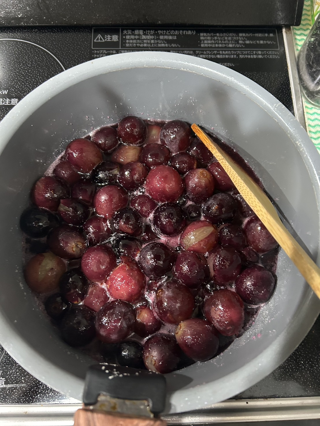2⃣約10~15分煮込んだらブドウの水分が出てきます。(水分がブドウの皮の色素を取り込んでくれます)