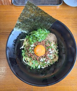 誘惑に負けず「かかやまぜそば」を注文しました!