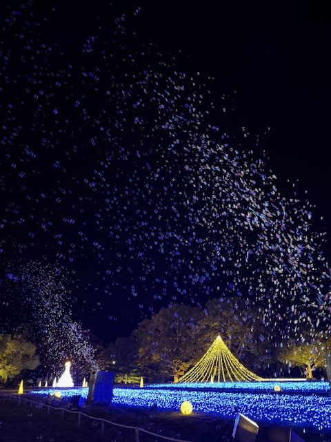また、30分毎にシャボン玉でのショーもあり、青く光る幻想的な場所になっています.。o○