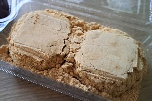 わぁぁぁ、、💓このきな粉の層を見てください👀👀✨溢れんばかりにきな粉がたっぷりかかっていて、おはぎを割ろうとすると簡単にトレーからきな粉が溢れちゃいます🥺💗なのでいかに綺麗にいただくかが大事になってきます🤔✨