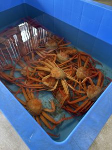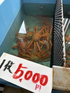 帰りにのぞいてみるとたくさんのカニが売られていて、