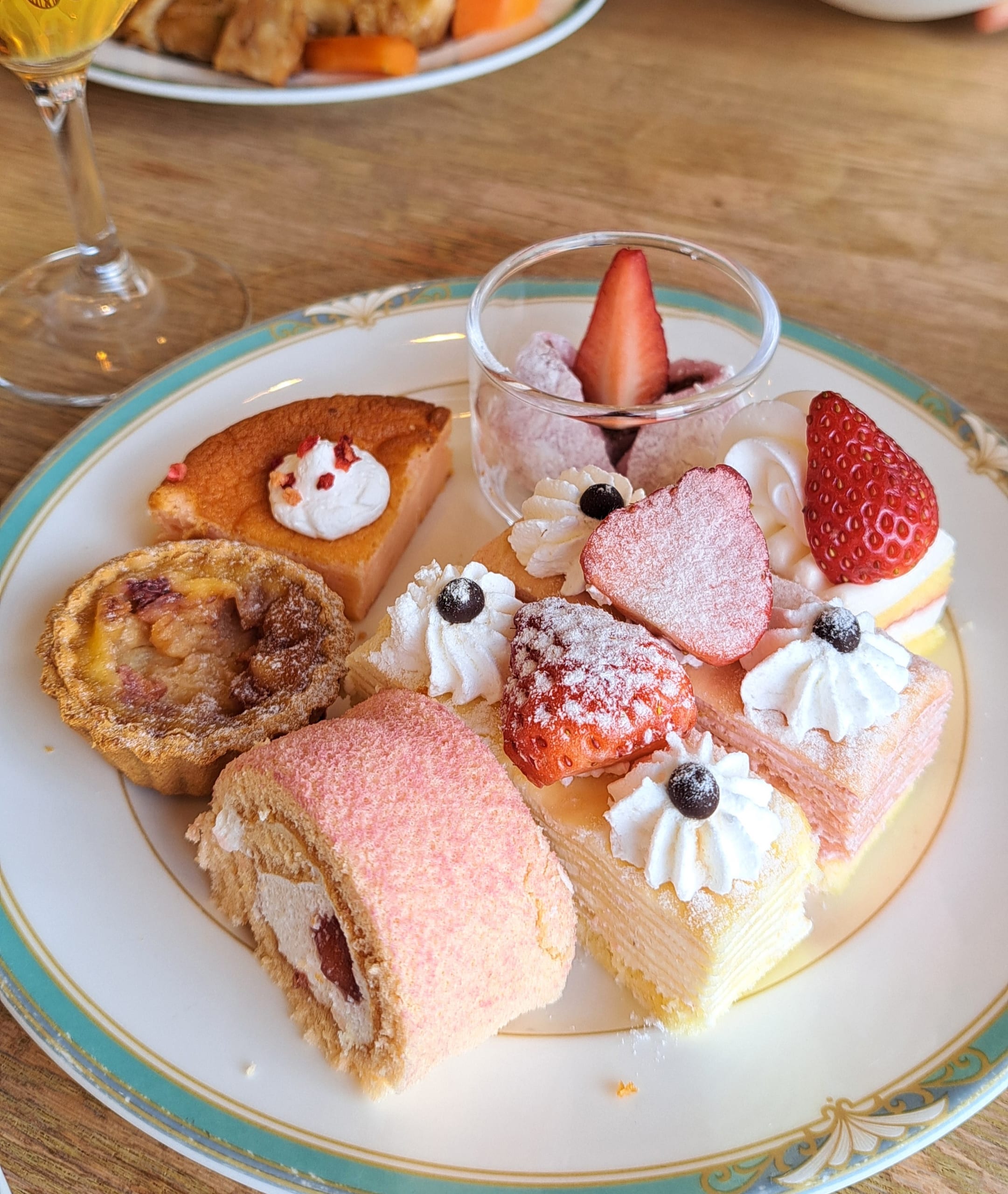 いちごビュッフェは全部甘そうに見えますが、そんなことはなく甘さが控えめなスイーツが多くありました🍰🍓💗
