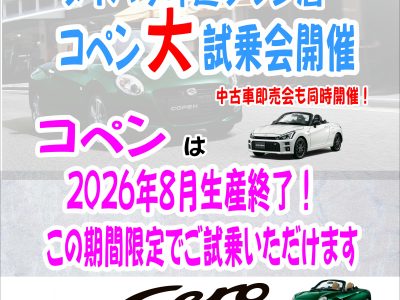 ダイハツ 現行型コペンは、2026年8月末をもって生産終了となります。 当店では、11月15日(土) […]
