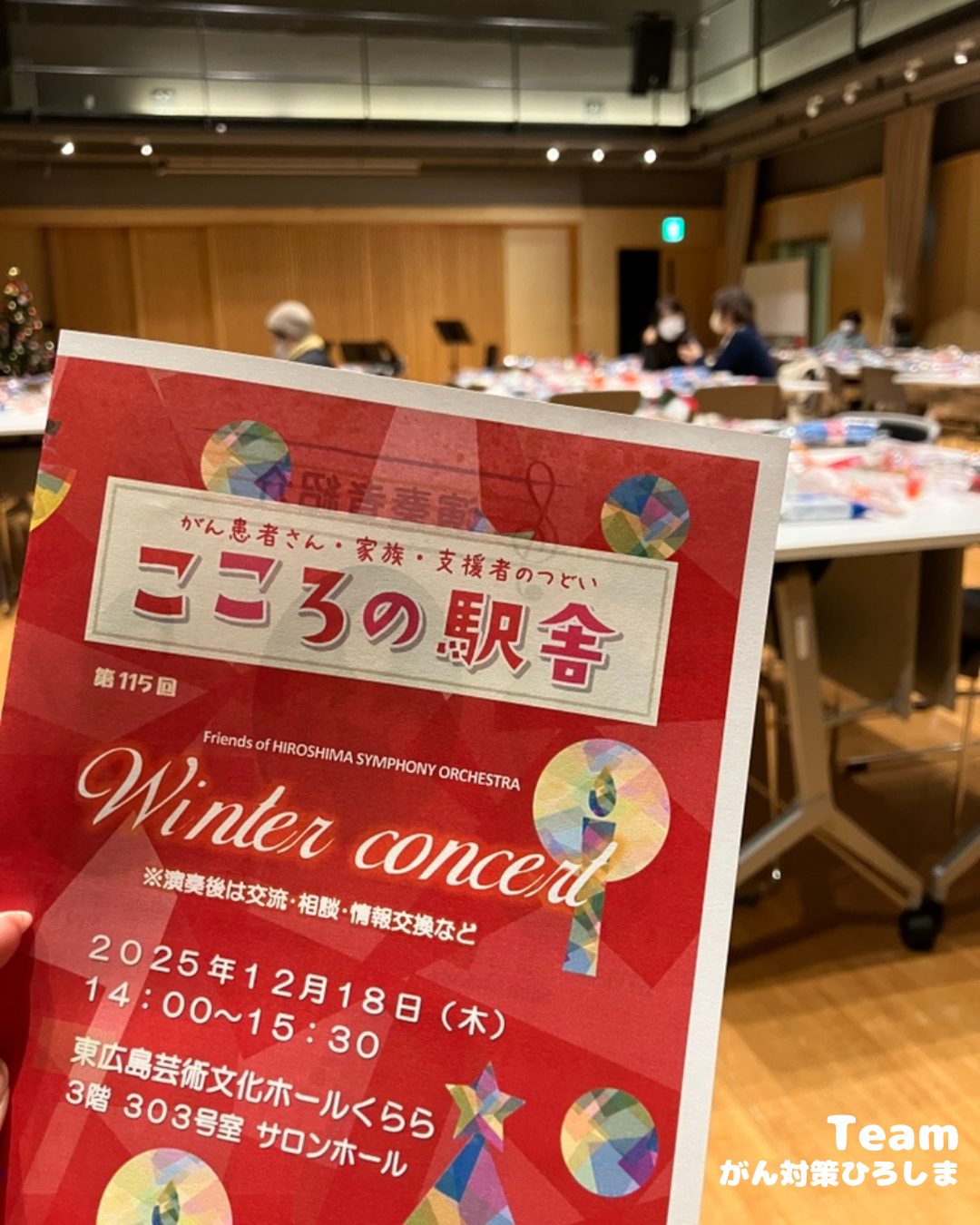12月19日(金)、Teamがん対策広島の活動の一環として、東広島市の『こころの駅舎』に参加させて頂きました。