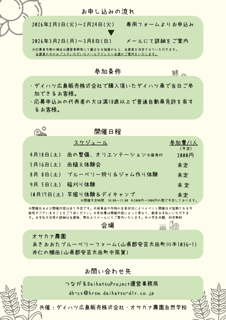 つながるDaihatsu Project〜農業体験〜 開催のお知らせ