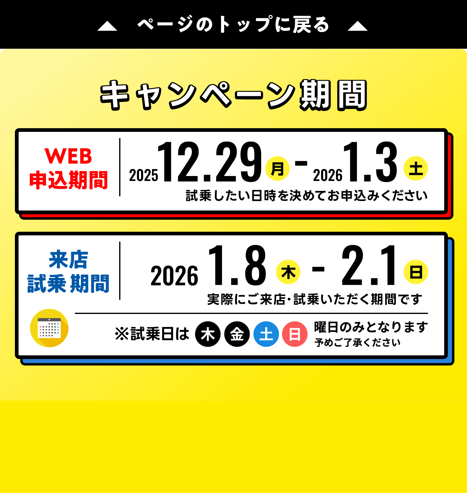 - ※ 試乗来店日は 木・金・土・日 のみです。