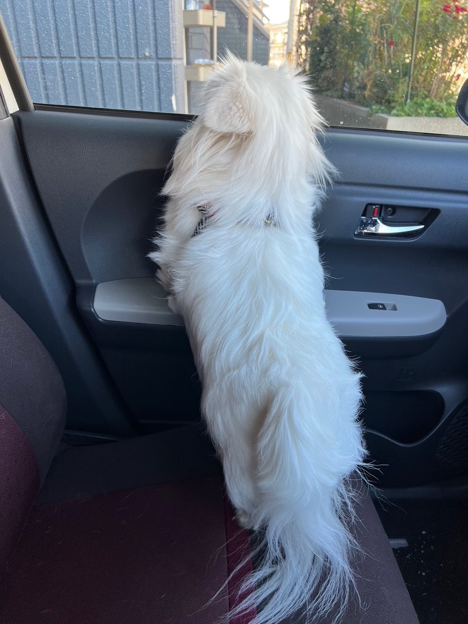病院の駐車場に到着後すぐに入り口を確認するもも・・・病院に入りたくないと訴えてきます。