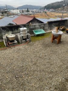 早速30㎏のもち米を蒸します。