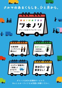 News 最新のニュース お知らせ ツキノリ 2025-09-20 月々定額でダイハツ車に乗れるサブスクサービス 「ツキノリ」。 車検や税金、メンテナンス費用もコミコミ。 最短1か月~お気軽にカーライフを楽しめます。 詳しくは(こちら) 前の記事へ 一覧に戻る 次の記事へ